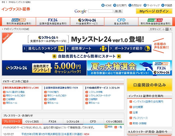 インヴァスト証券 (シストレ24)の詳細・申込はこちら ↑↑